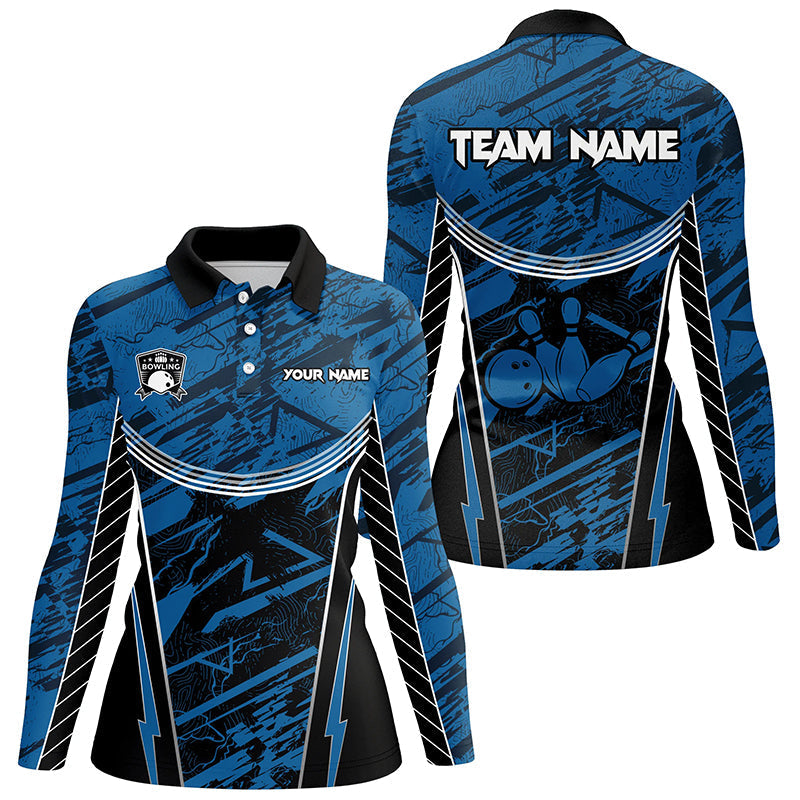 Blue Camo Women's Bowling Polo Shirt - Custom Team Jersey N7490