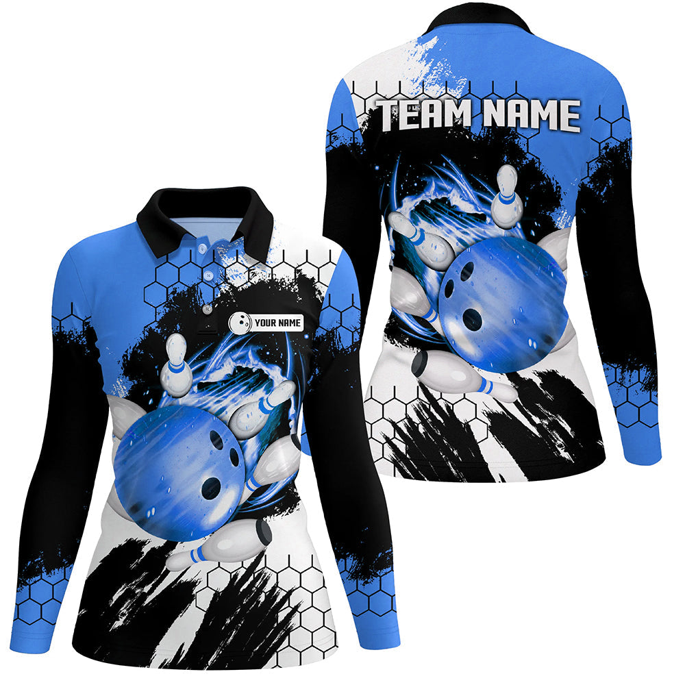 Blue Flame Bowling Polo Shirt for Women - Custom Team League N7162