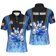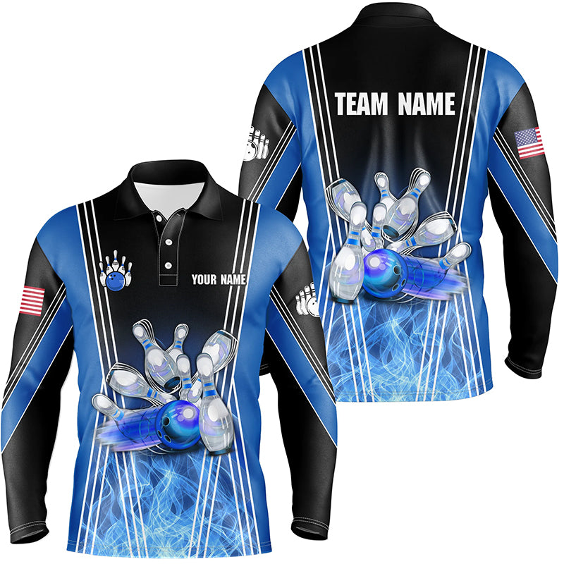 Men's Blue Flame Bowling Polo Shirt - Custom Team Jersey N7237