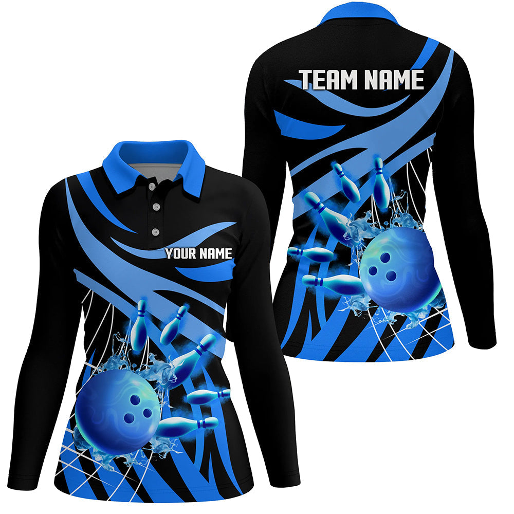 Women's Blue Flame Bowling Polo Shirt - Custom Team Jersey N7243