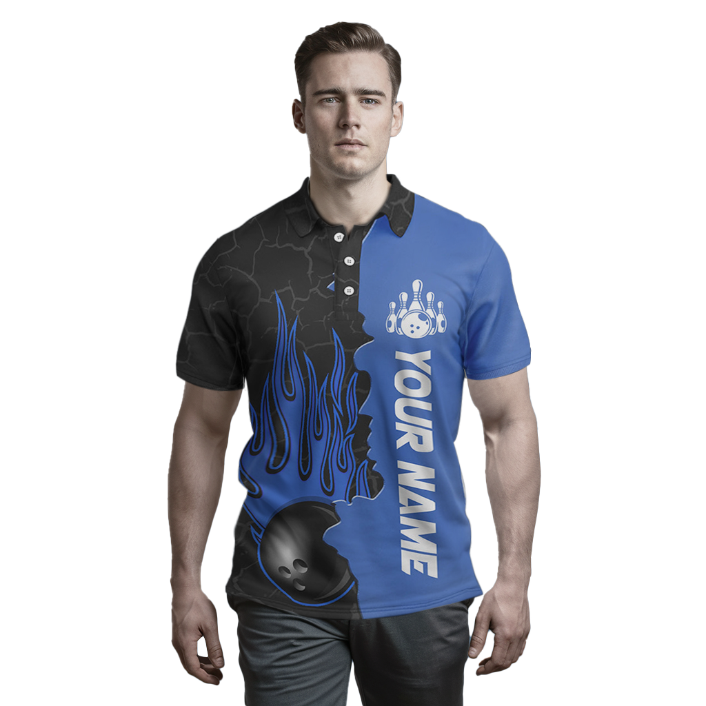 Custom Blue Flame Bowling Polo Shirts for Men & Women B471