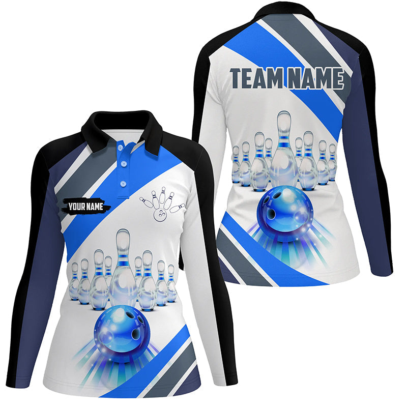 Women's Blue Light Bowling Polo Quarter Zip Shirt N7586