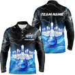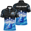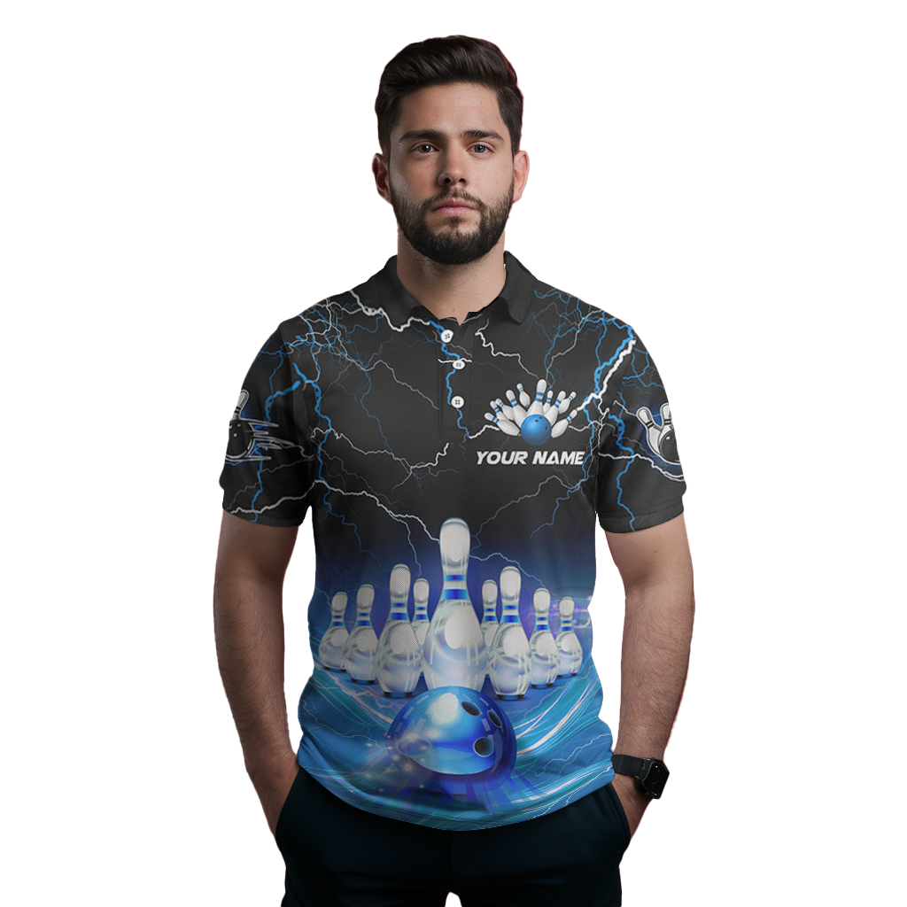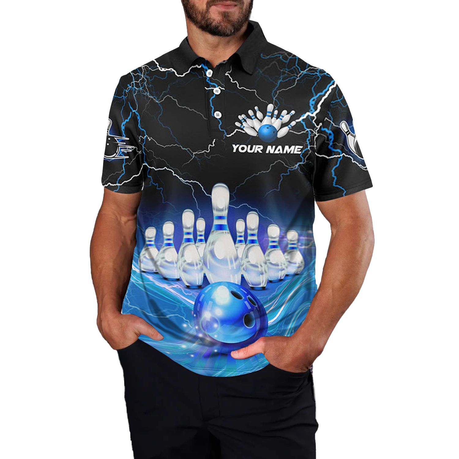 Blue Lightning Thunder Men's Bowling Polo Shirt - Custom Team Jersey N7419