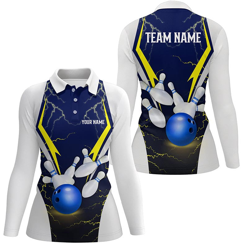 Women's Custom Blue Lightning Bowling Polo Shirt N7455