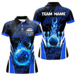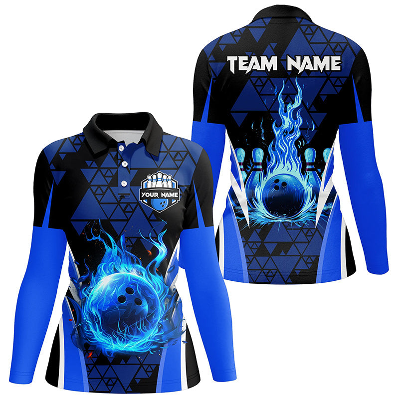 Women's Custom Blue Triangle Flame Bowling Polo Shirt N7464