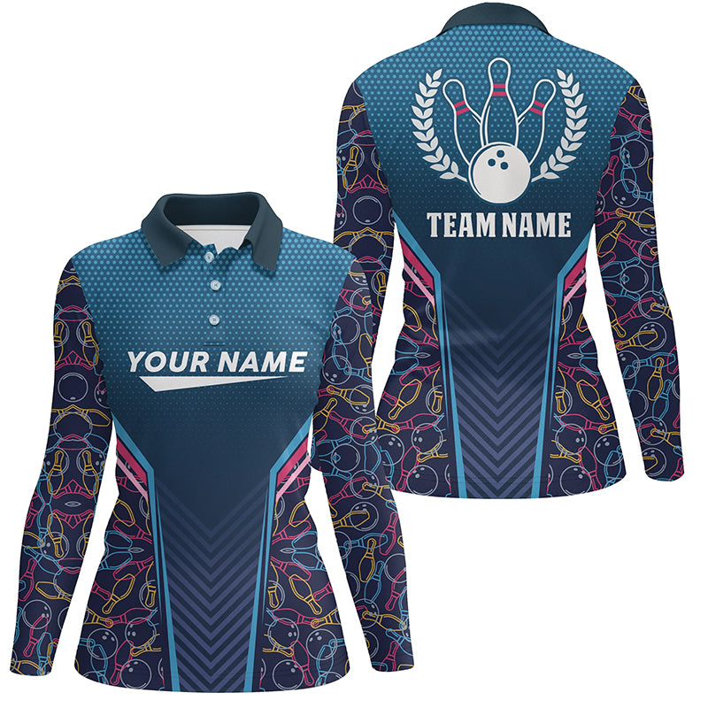 Women's Blue Camo Bowling Polo Shirt - Personalised Team Jersey N6832