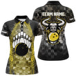 Women's Black & Yellow Bowling Polo Shirt - Custom Team Jersey N6499