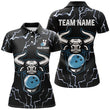 Women's Black Bowling Polo Shirt - Thunder Lightning Custom Team Jersey N6498