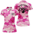 Women's Custom Blue Pink Camo Bowling Team Shirts I6703