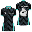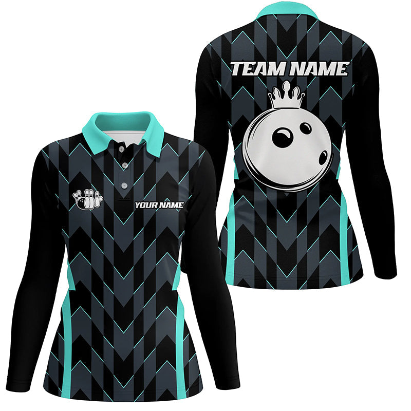 Women's Custom Camo Bowling Polo, Quarter Zip - Turquoise N8201
