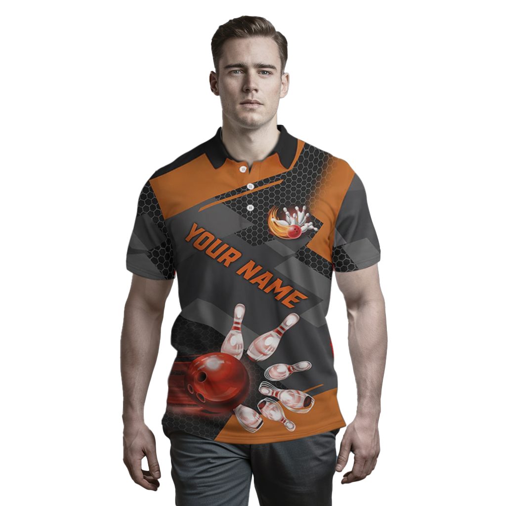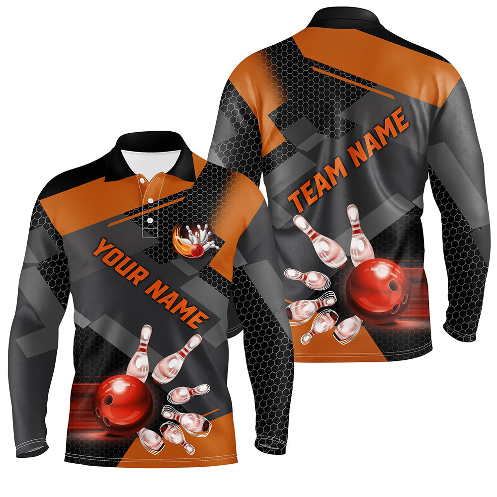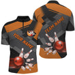 Men's Orange Bowling Quarter Zip Polo Shirt - Custom Team Jersey N7968