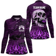 Women's Purple Camo Flame Skull Bowling Polo Shirt N7654