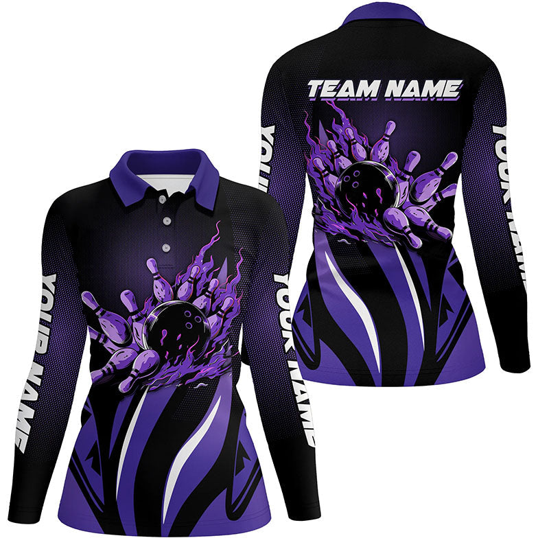Women's Purple Bowling Polo Quarter Zip Shirt N7967