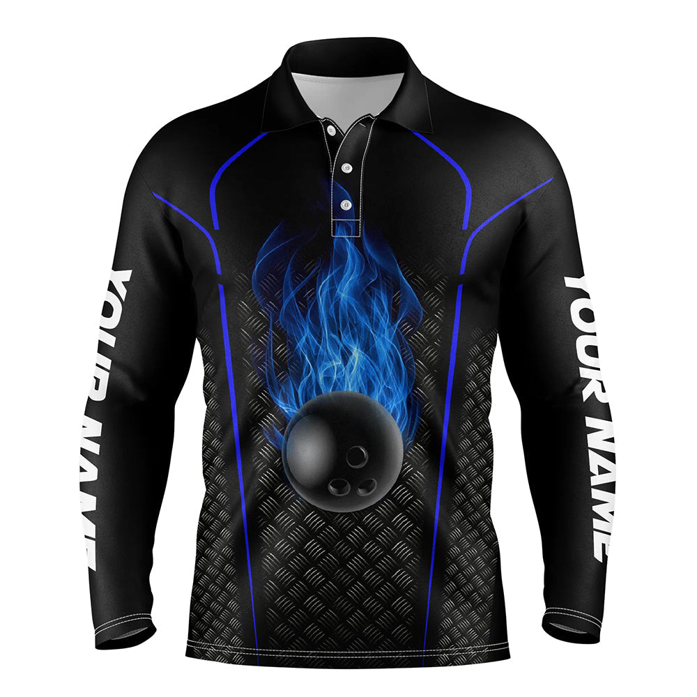 Men's 3D Black & Blue Bowling Polo Shirt N5143