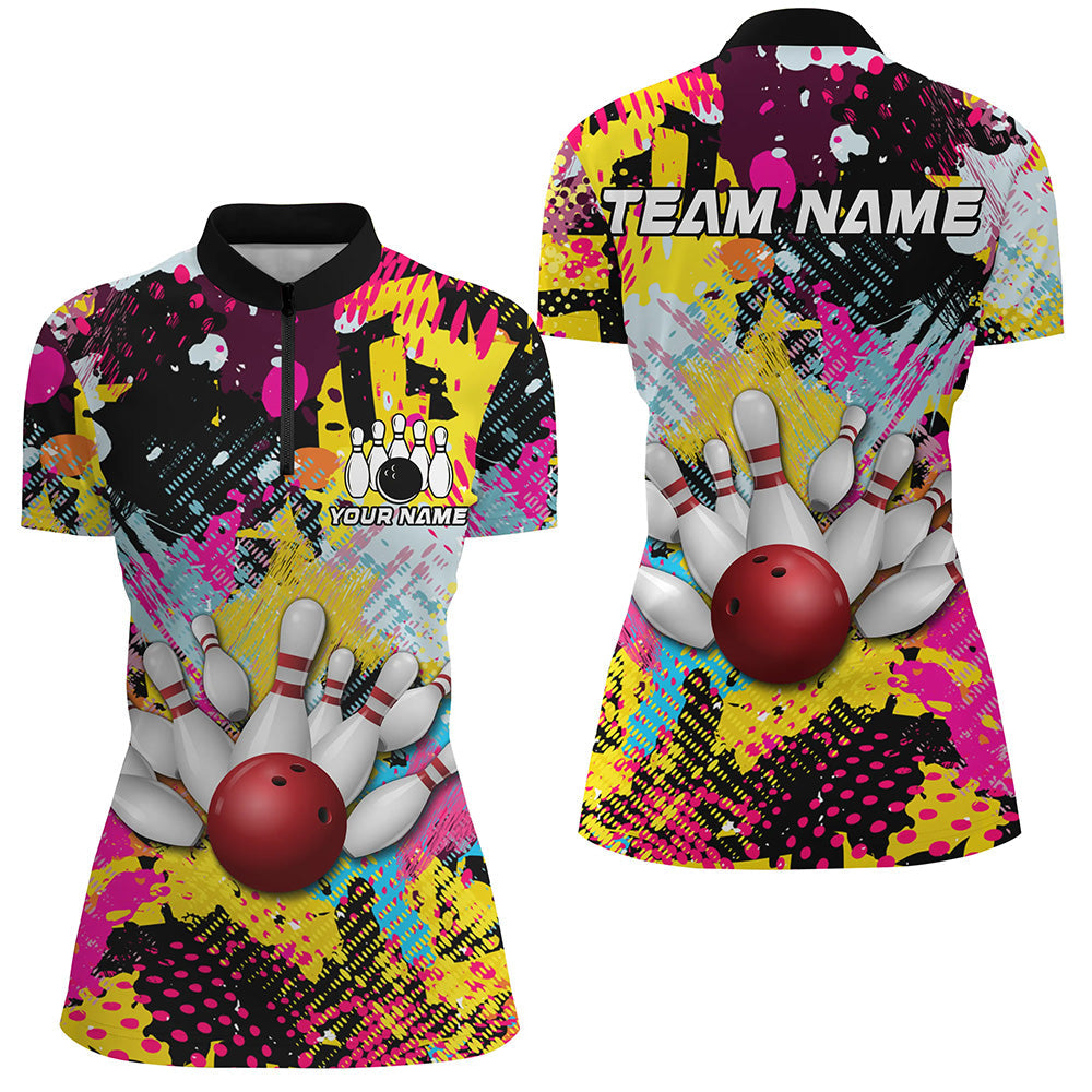 Women's Custom Bowling Polo 1/4 Zip Shirt N8023