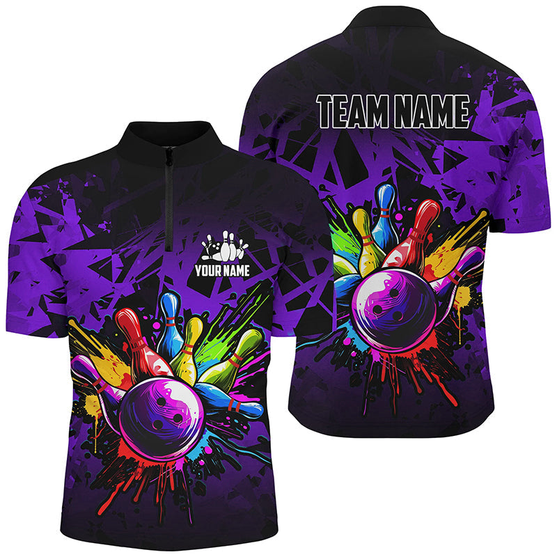 Purple Bowling Polo 1/4 Zip Shirt for Men - Custom Team Jersey N8258