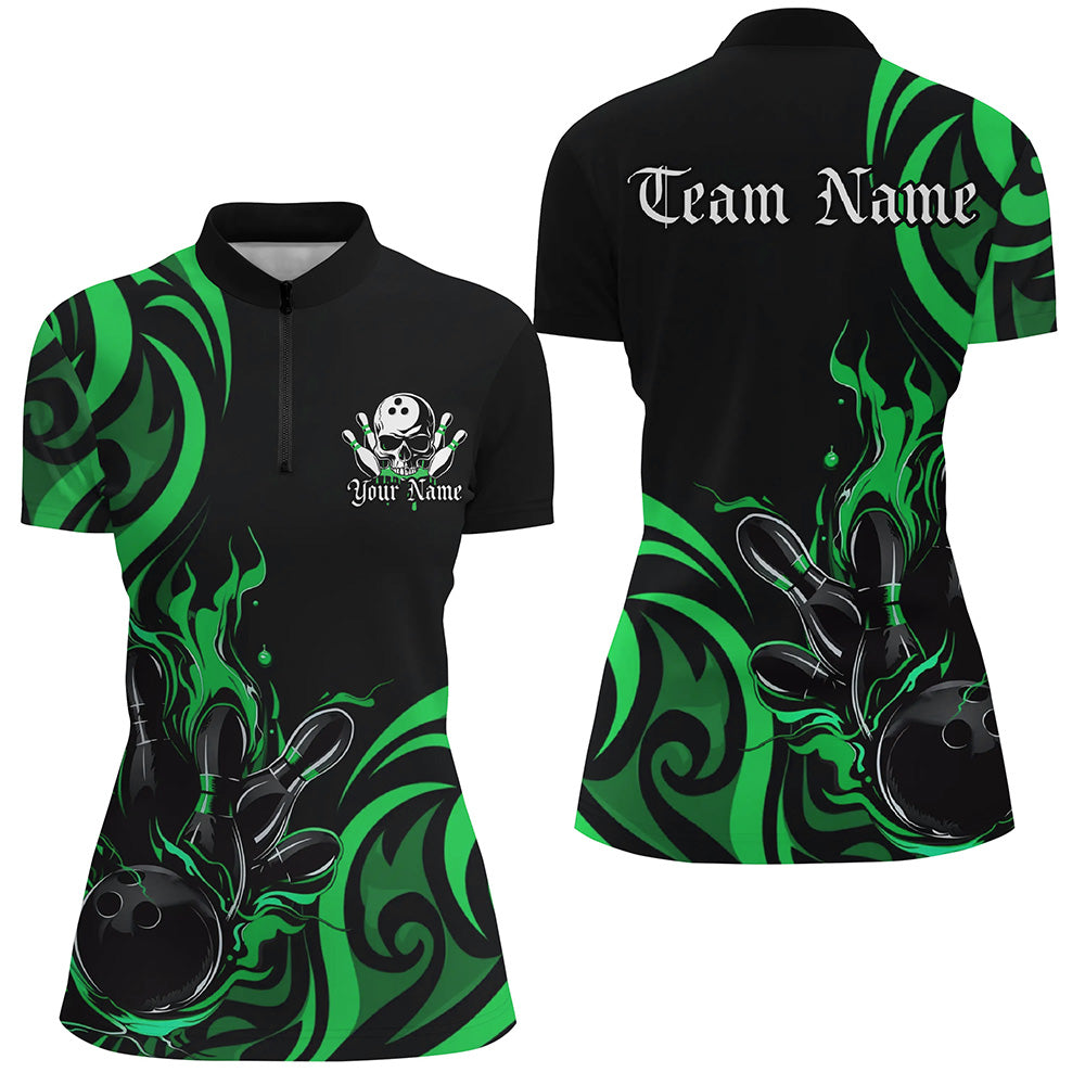 Women's Black & Green Flame Bowling Shirts I7323