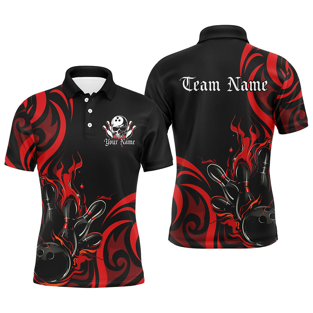 Men's Custom Black & Red Flame Bowling Shirts I7322