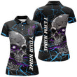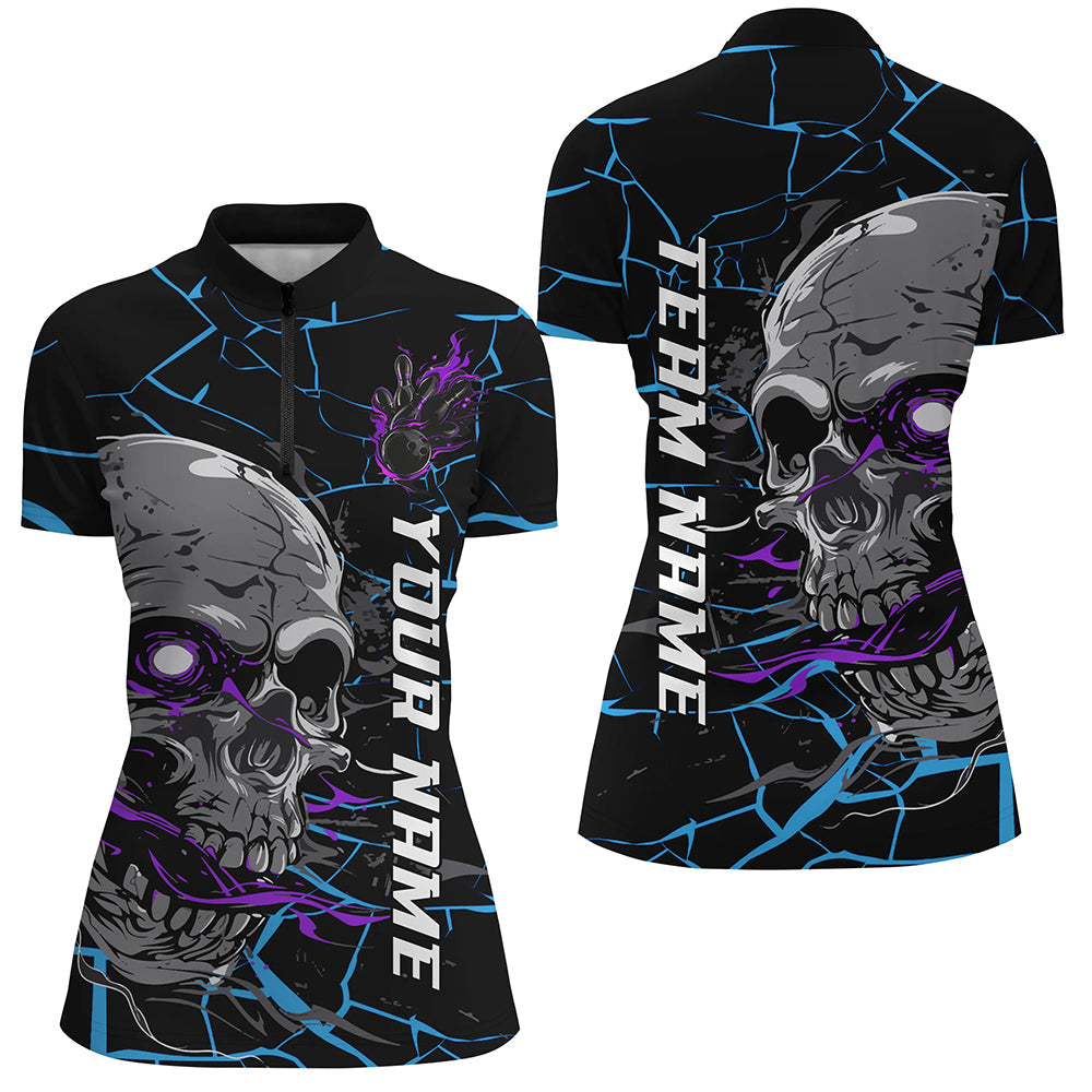 Women's Custom Blue & Purple Halloween Skull Bowling Shirt I7095