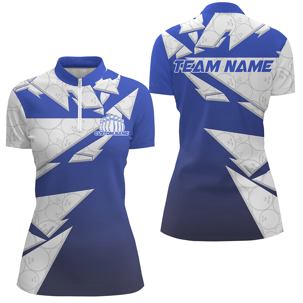 Women's Custom Blue Bowling Shirts with Ball Pattern I6271