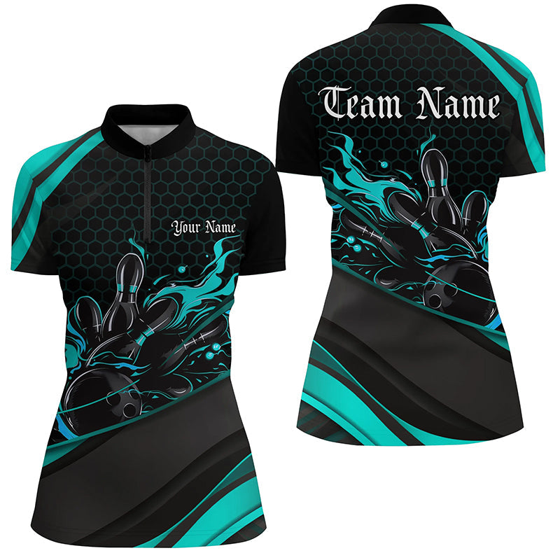 Custom Blue Flame Ladies Bowling Shirts I7270