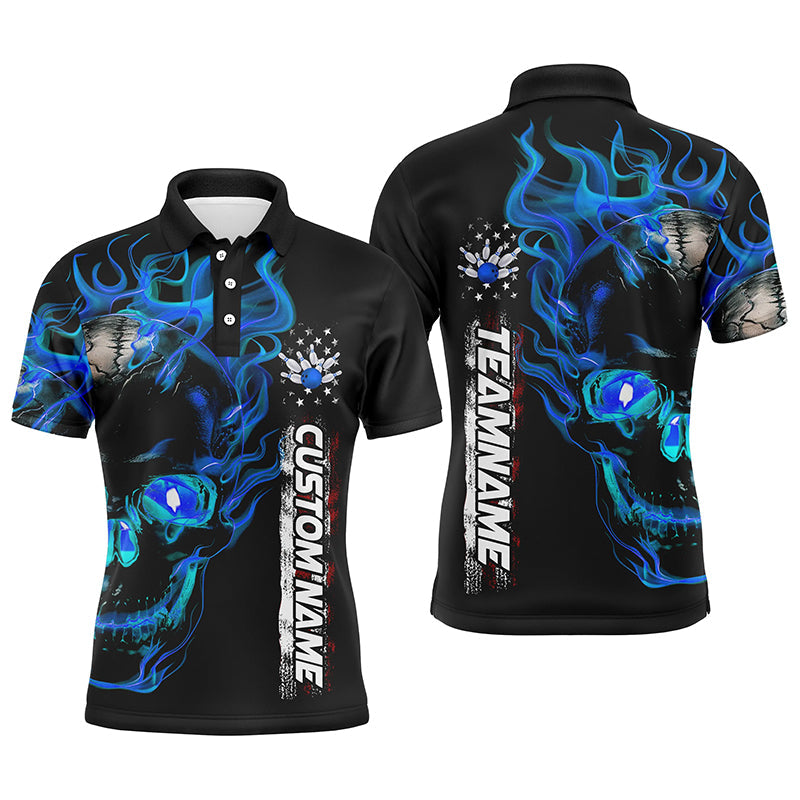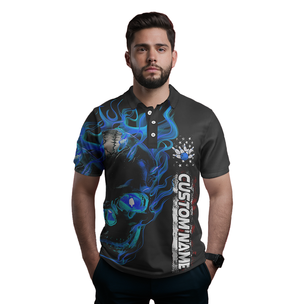Custom Blue Flame Skull Bowling Polo/Quarter-Zip Shirts for Men and Women I6097