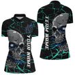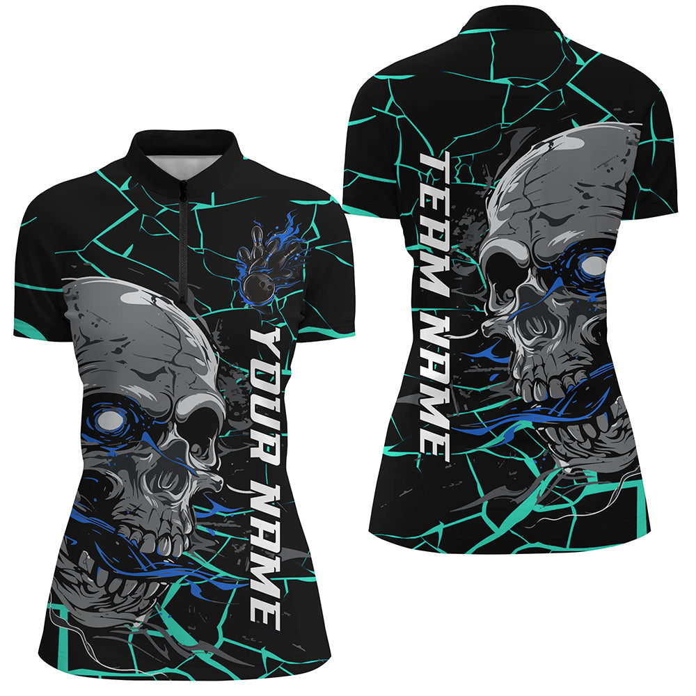 Women's Custom Blue Halloween Skull Bowling Shirt I7096