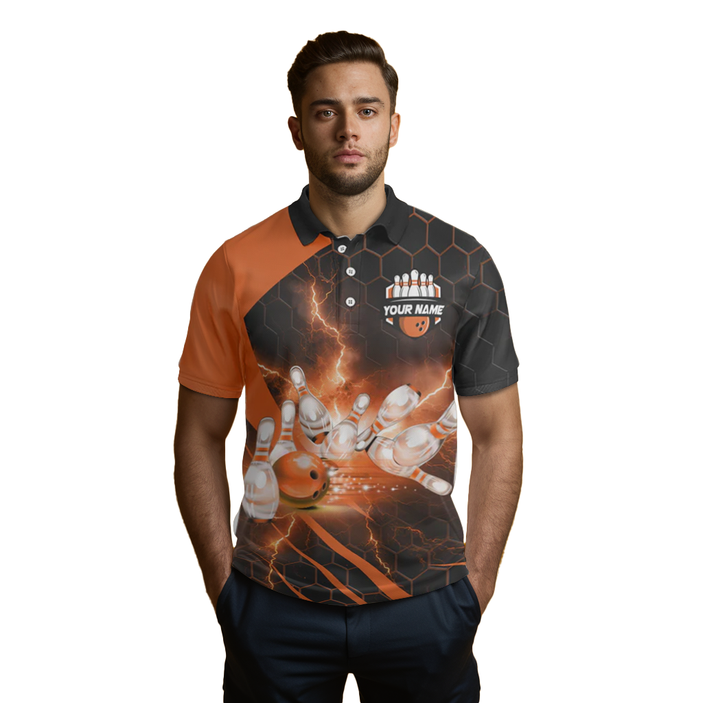 Orange Couples Bowling Polo Shirt B491