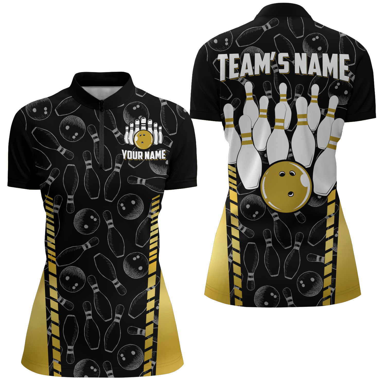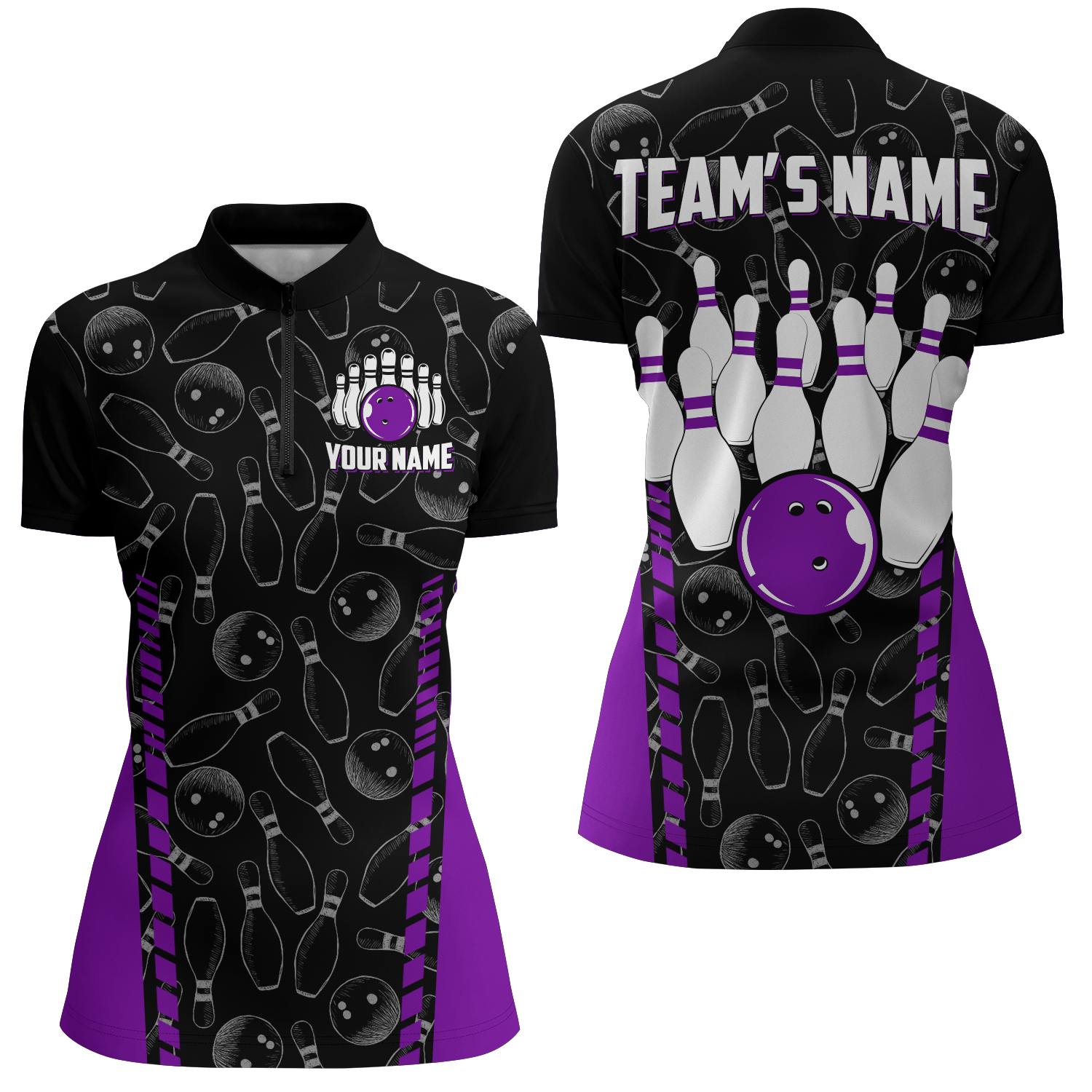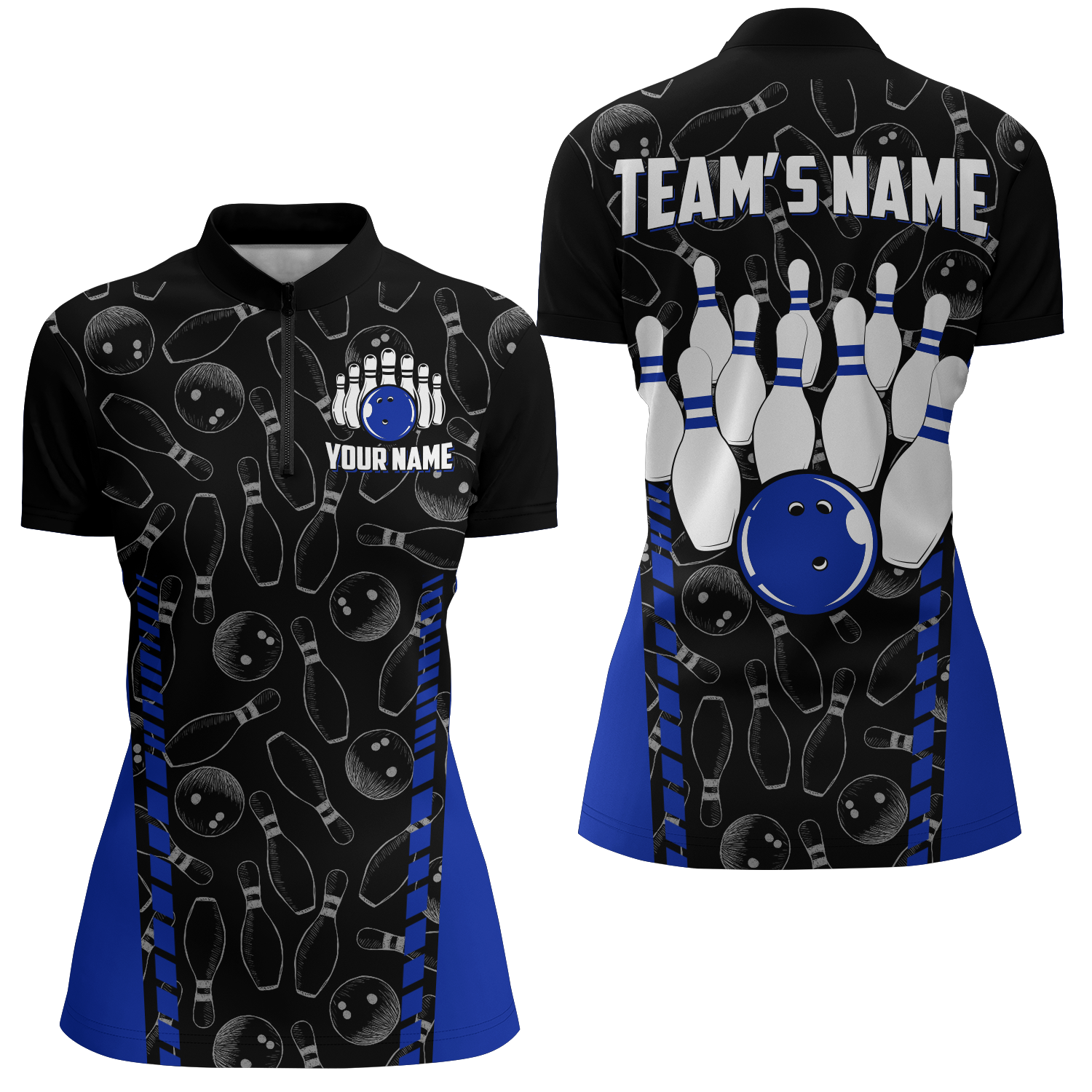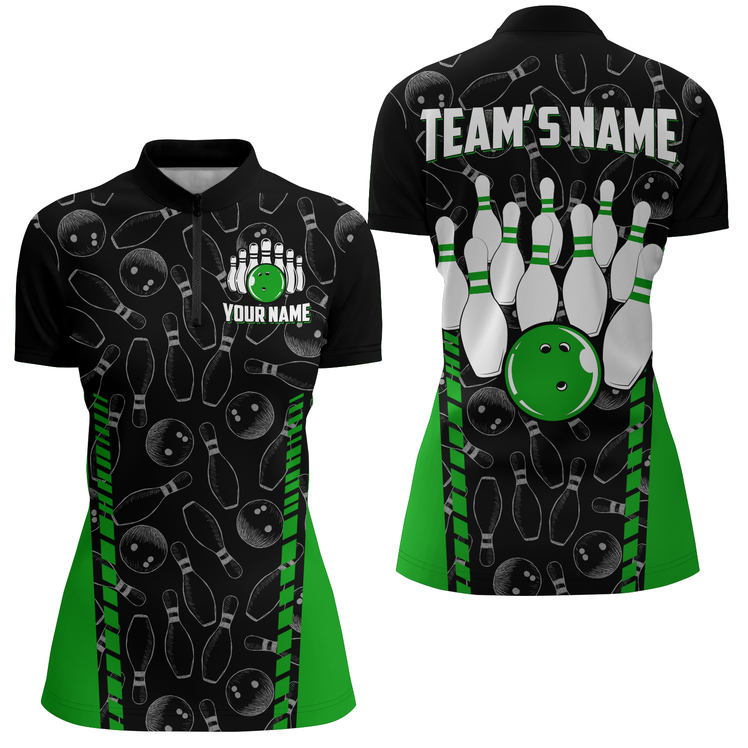 Women's Custom Bowling Quarter-Zip Jersey with Seamless Pattern B302