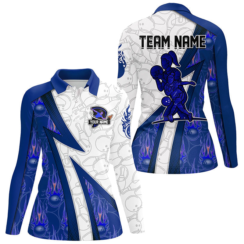 Women's Blue Flame Camo Bowling Polo Shirt N7937