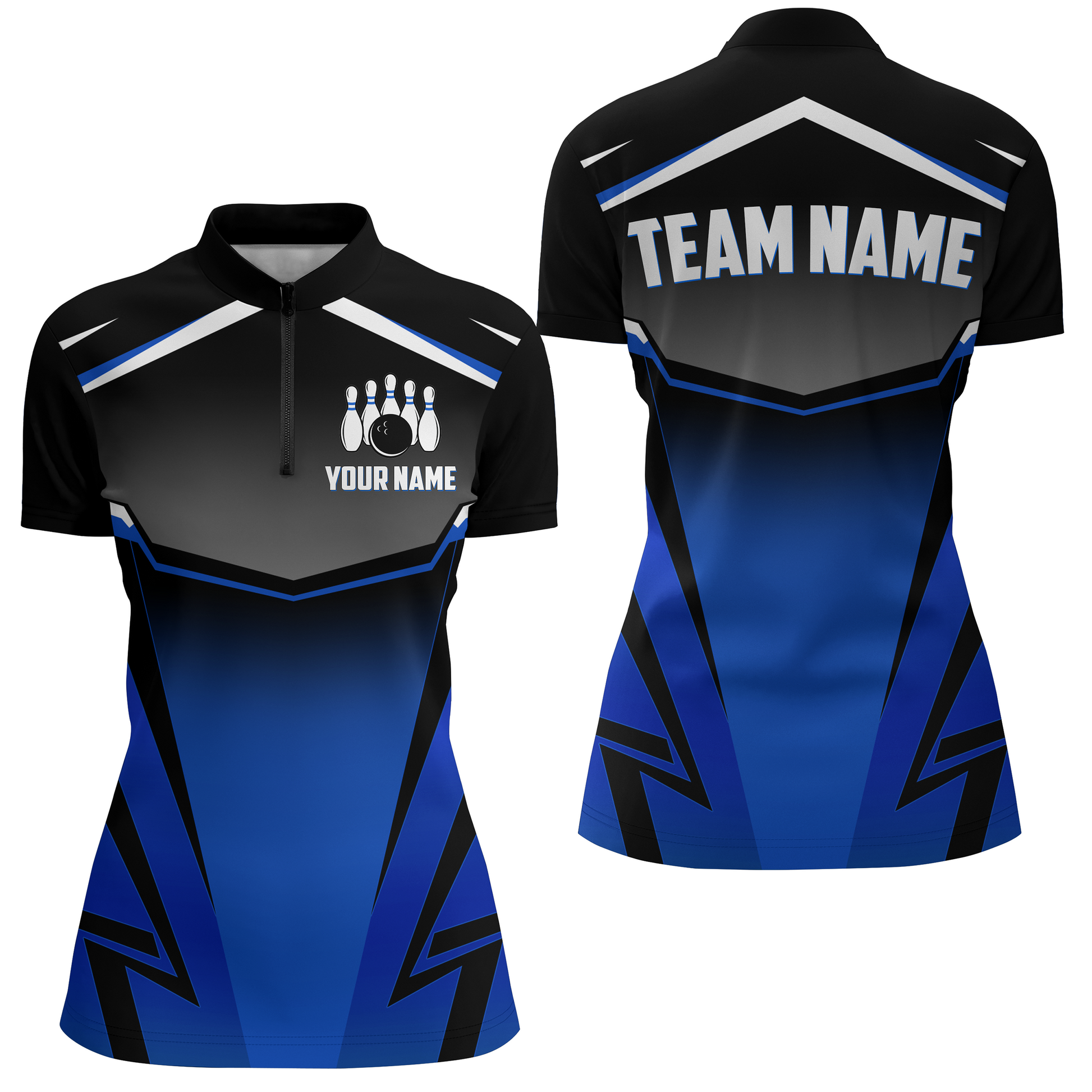 Blue Unisex 1/4 Zip Bowling Team Jersey B530
