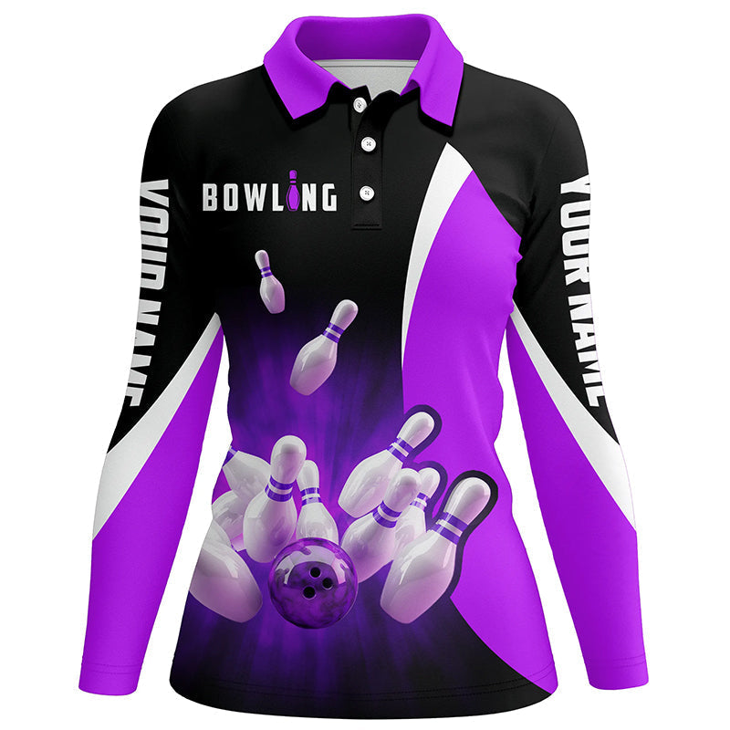 Women's Retro Black & Purple Bowling Polo Shirt N6937