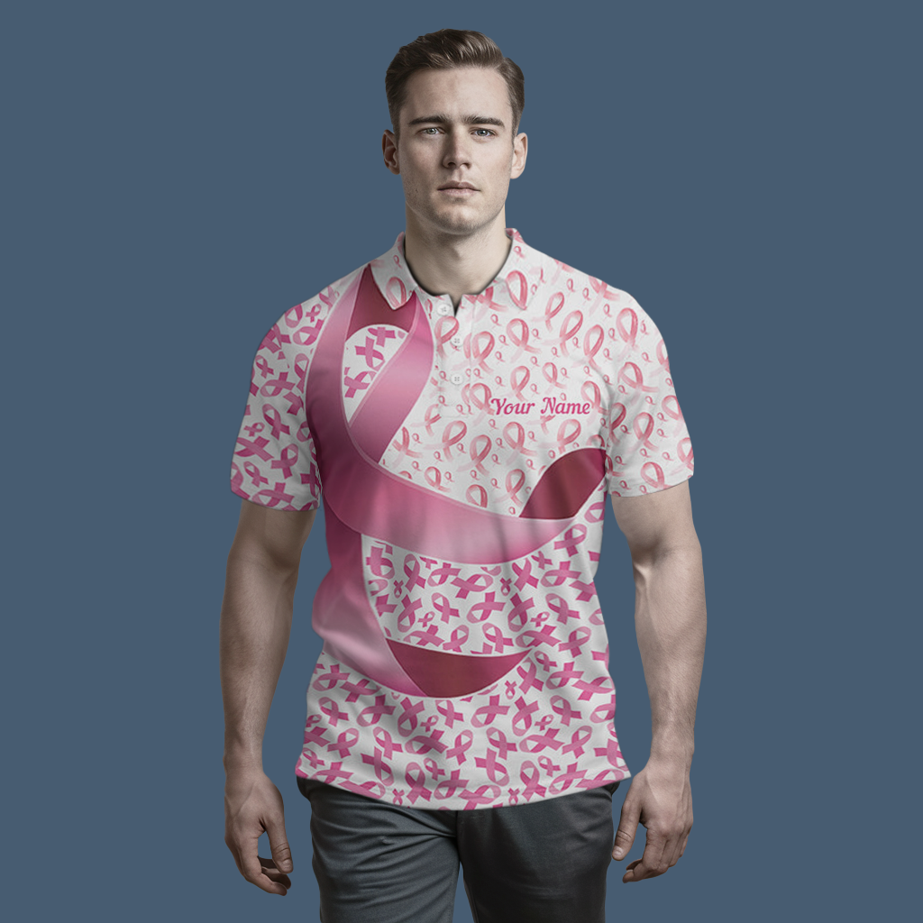 Custom Pink Ribbon Polo Shirts for Men & Women I7127