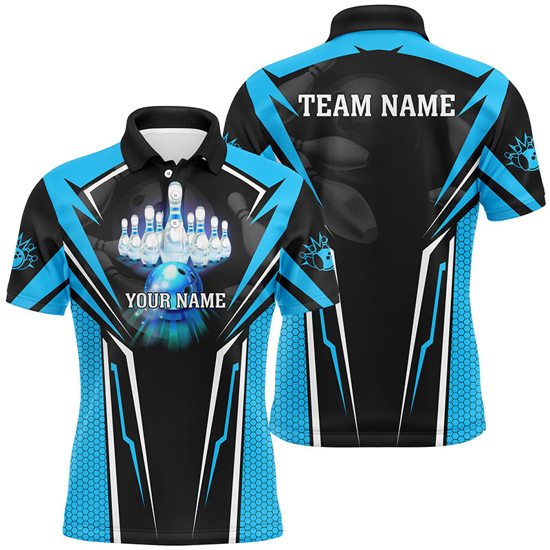 Men's Cyan Blue Bowling Polo Shirts - Strike Team Jerseys I5224