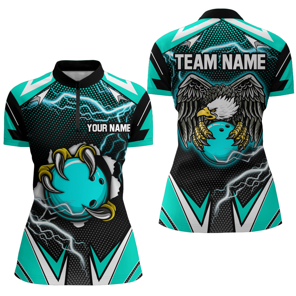 Custom Eagle Bowling 1/4 Zip Jerseys for Men & Women - Turquoise B468