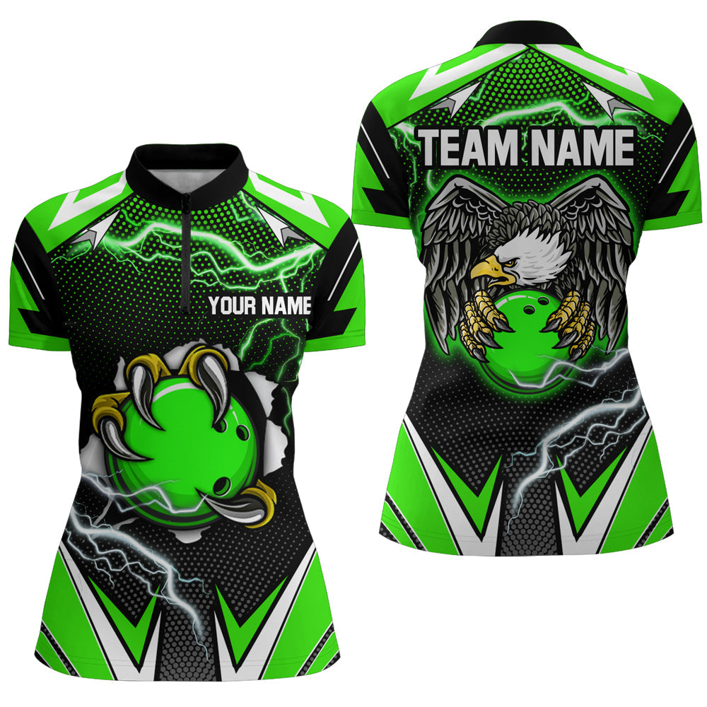 Custom Eagle Bowling Team Quarter Zip Jerseys - Green - Unisex B468