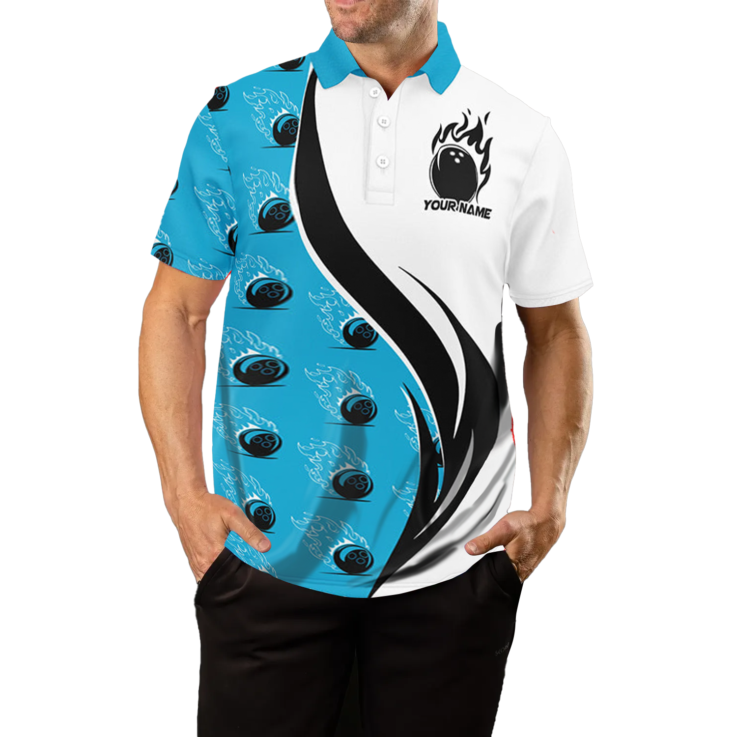 Men's Blue Bowling Polo Shirt - Custom Flame Design I6974