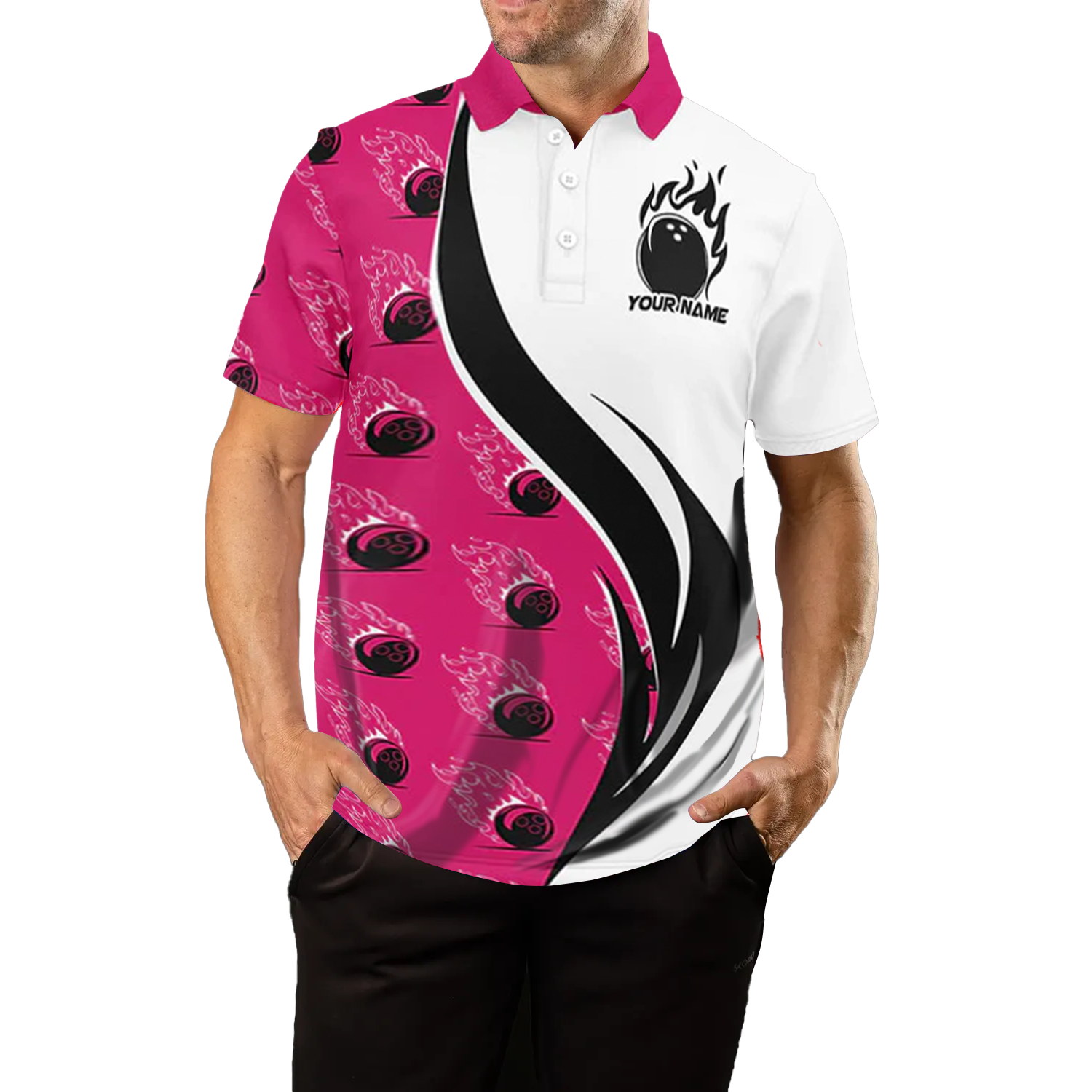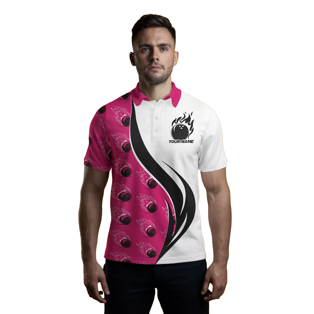 Men's Pink Bowling Polo Shirt - Custom Team Uniform I6975