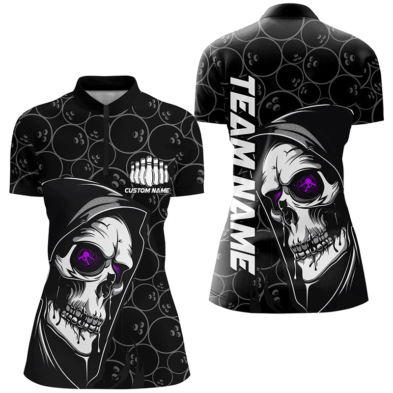 Women's Purple Halloween Skull Bowling Shirt I7082