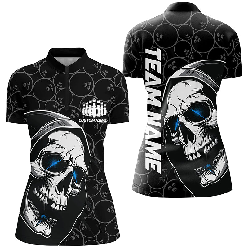 Personalised Blue Halloween Skull Bowling Shirt for Women I7078