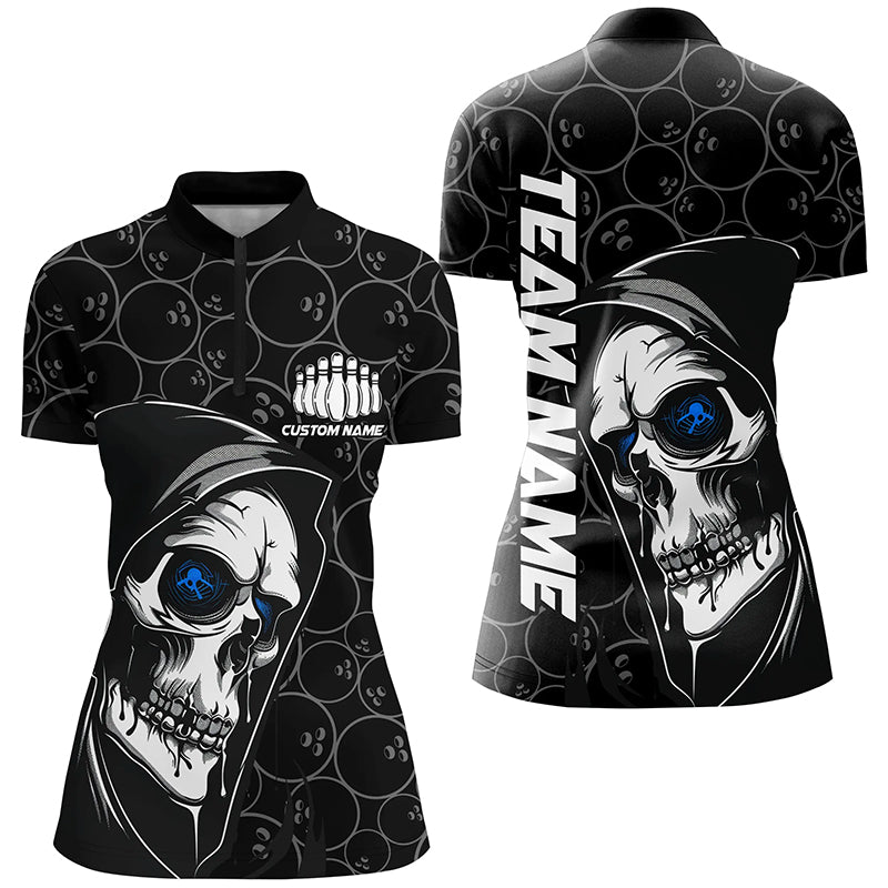 Personalised Blue Halloween Skull Bowling Shirt for Women I7081