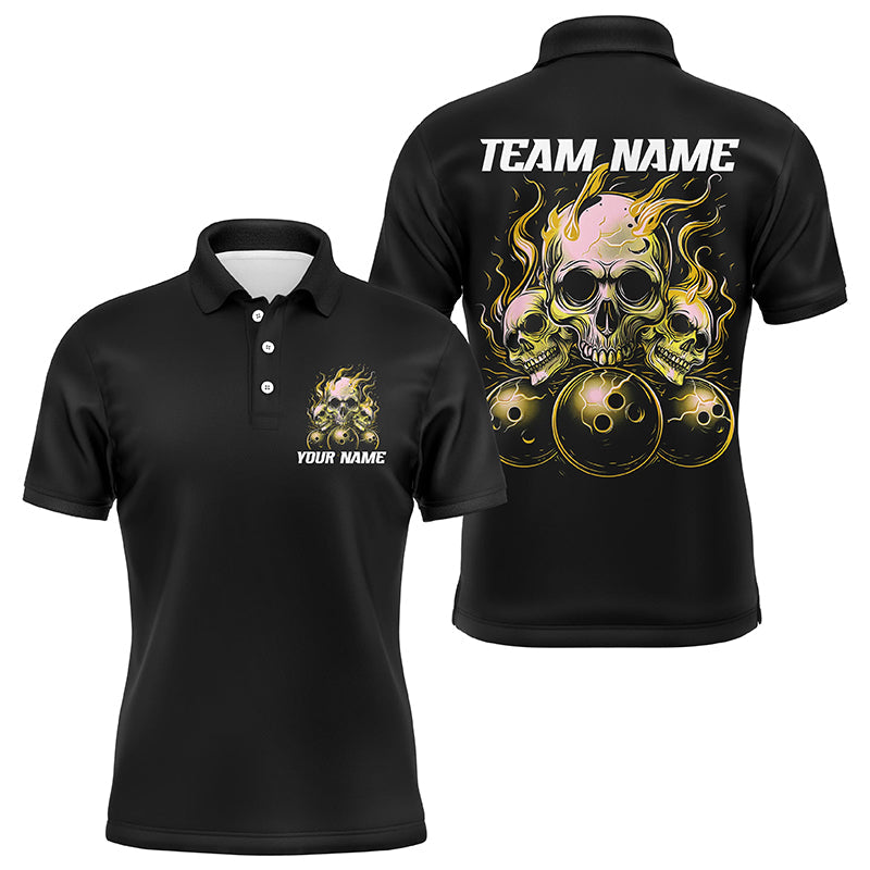 Custom Multi-Colour Flame Skull Unisex Bowling Shirts I6582