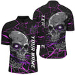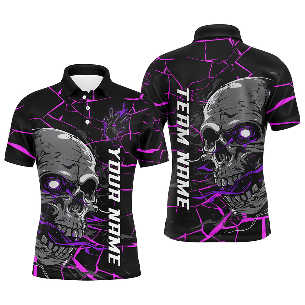 Men's Custom Purple & Pink Halloween Skull Bowling Shirt I7094