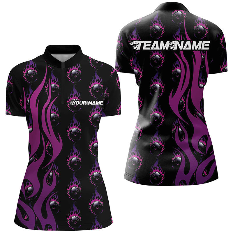 Women's Custom Purple Flame Bowling League Shirts I6969