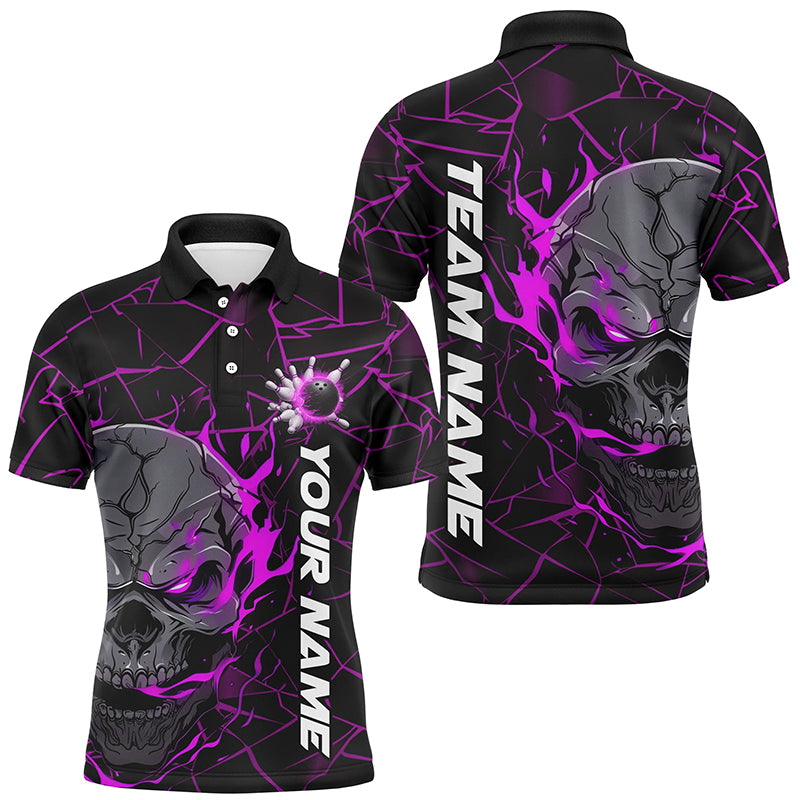 Men's Purple Flame Skull Bowling Shirt - Halloween Team Outfit I7099