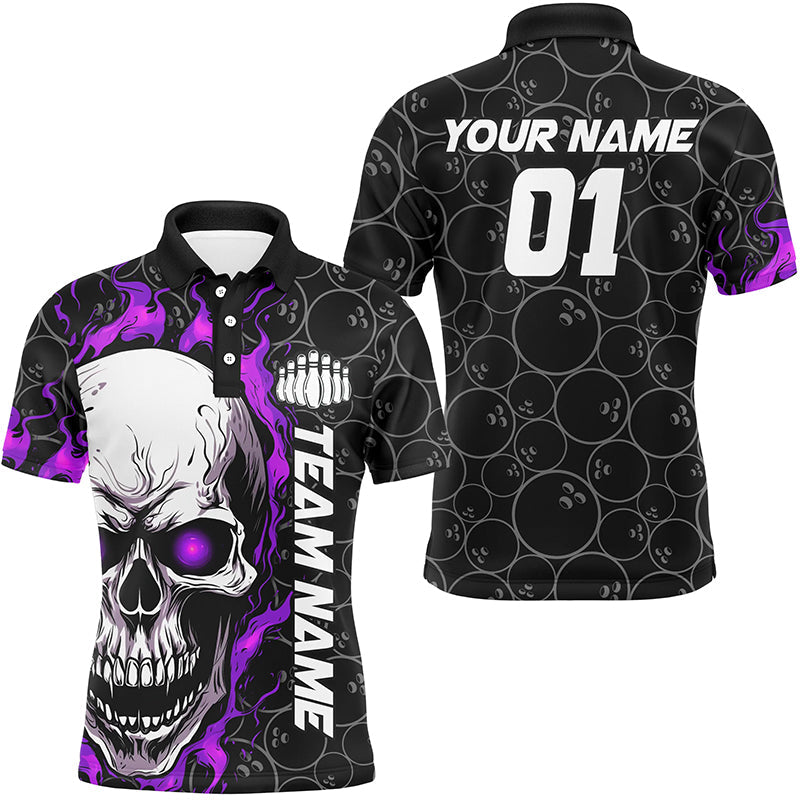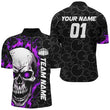 Custom Purple Flame Skull Bowling Shirts for Men I7104