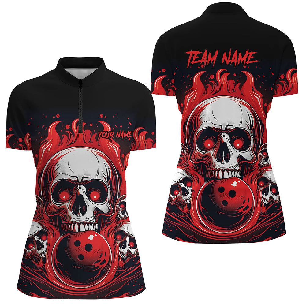 Custom Red Skull Flame Bowling Jerseys for Women I5841