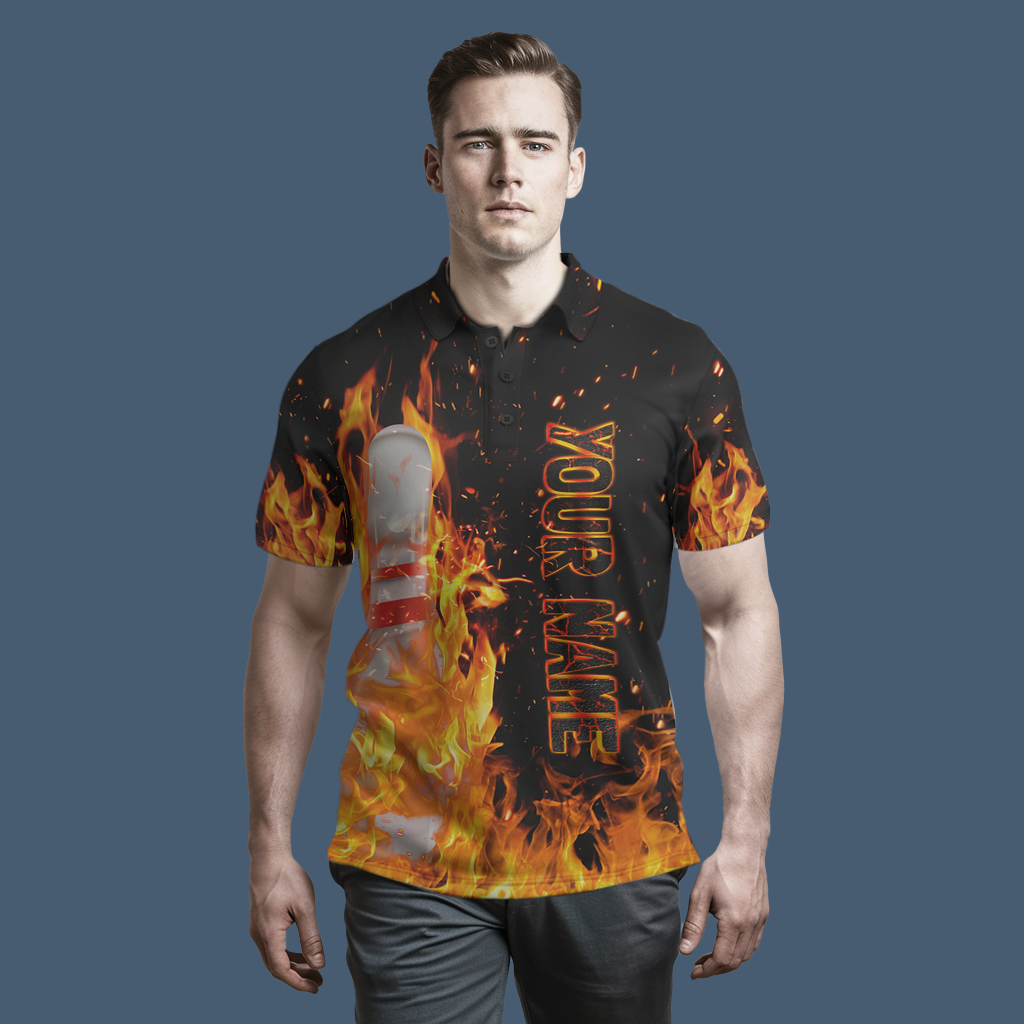 Flame Men's Polo Bowling Shirt - Clean Sweeps Team Jersey N80