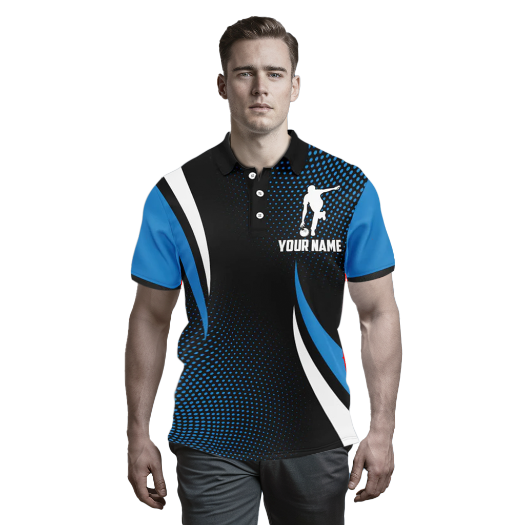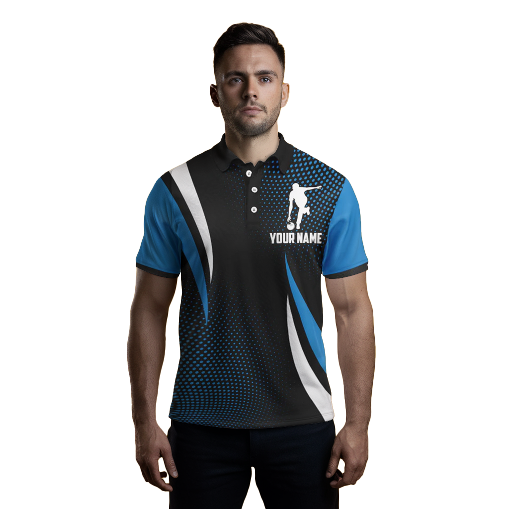 Men's Custom Strike Blue Bowling Polo Shirt N155