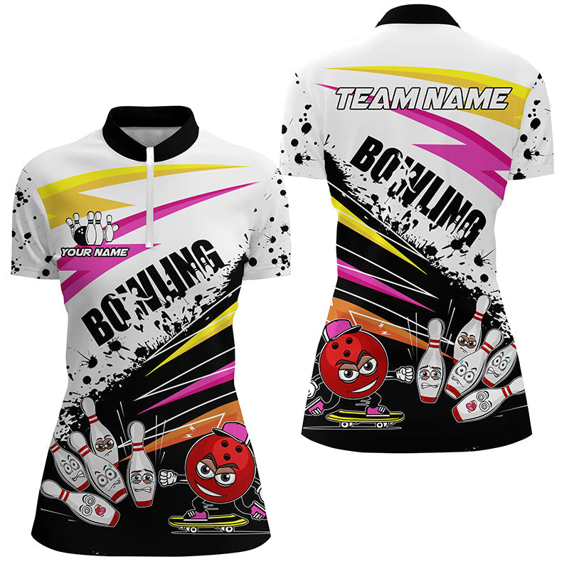 Women's Custom Bowling Polo 1/4 Zip - Funny Colourful Design N8047